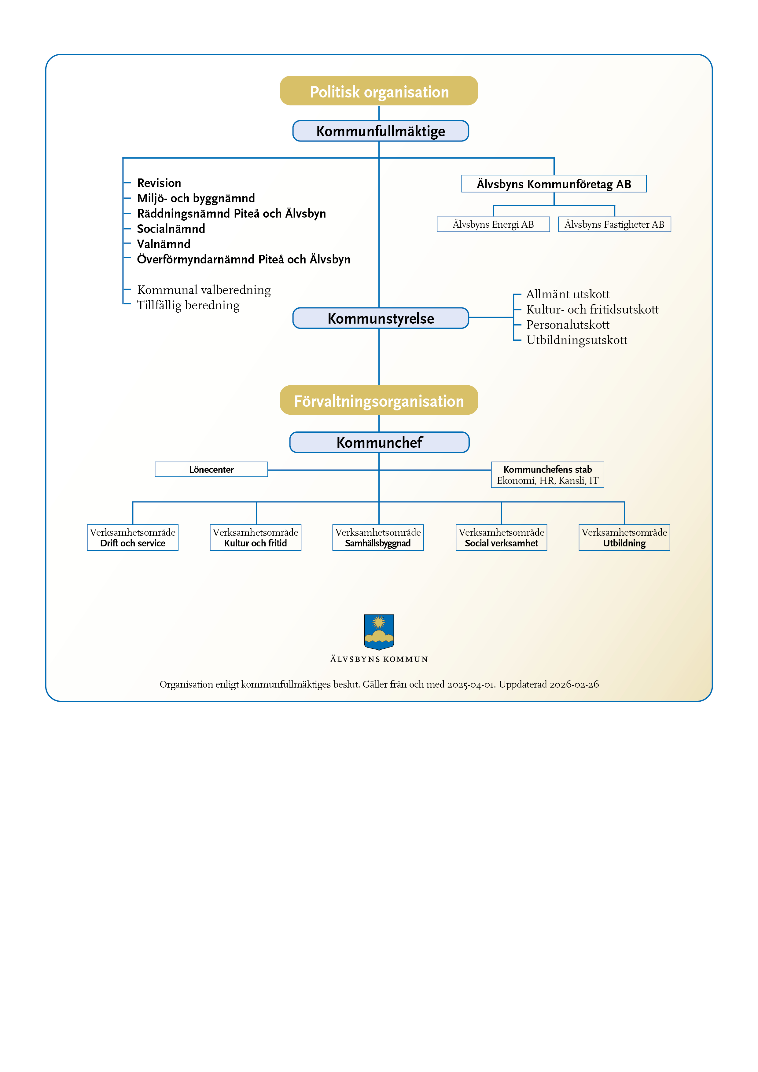 Organisationskiss Politik + Verksamhetsområde, gäller fr 250401 (uppdaterad 260226)