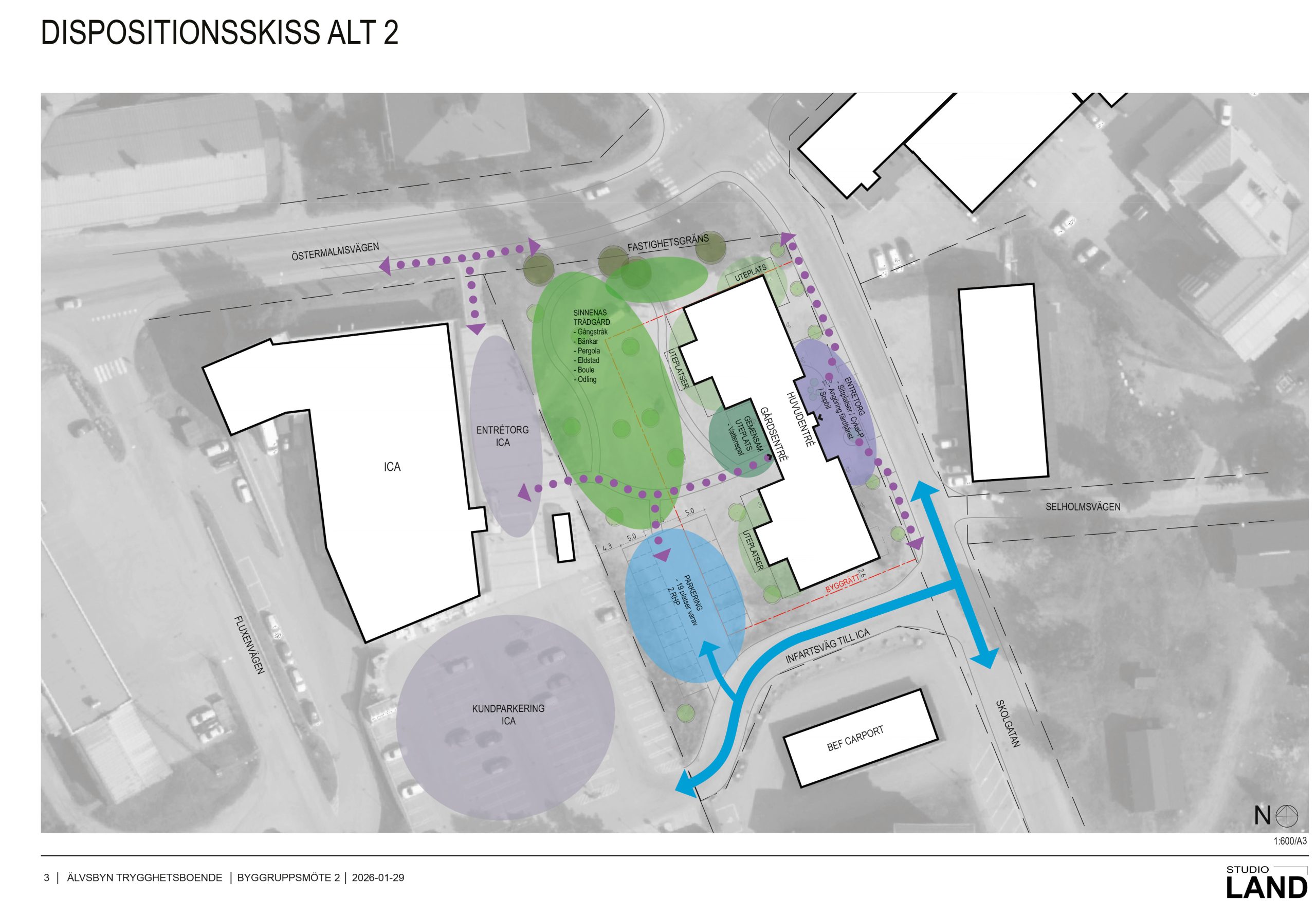Efter upphandling enligt LOU tilldelades Riksbyggen uppdraget som samarbetspartner den 25 juni 2024. En första utredning behandlades av kommunfullmäktige den 24 februari 2025 och visade på behovet av en boendemix med särskilt boende (SÄBO), trygghetsbostäder, biståndsbedömda trygghetsbostäder, gruppbostäder enligt LSS samt tillagningskök.